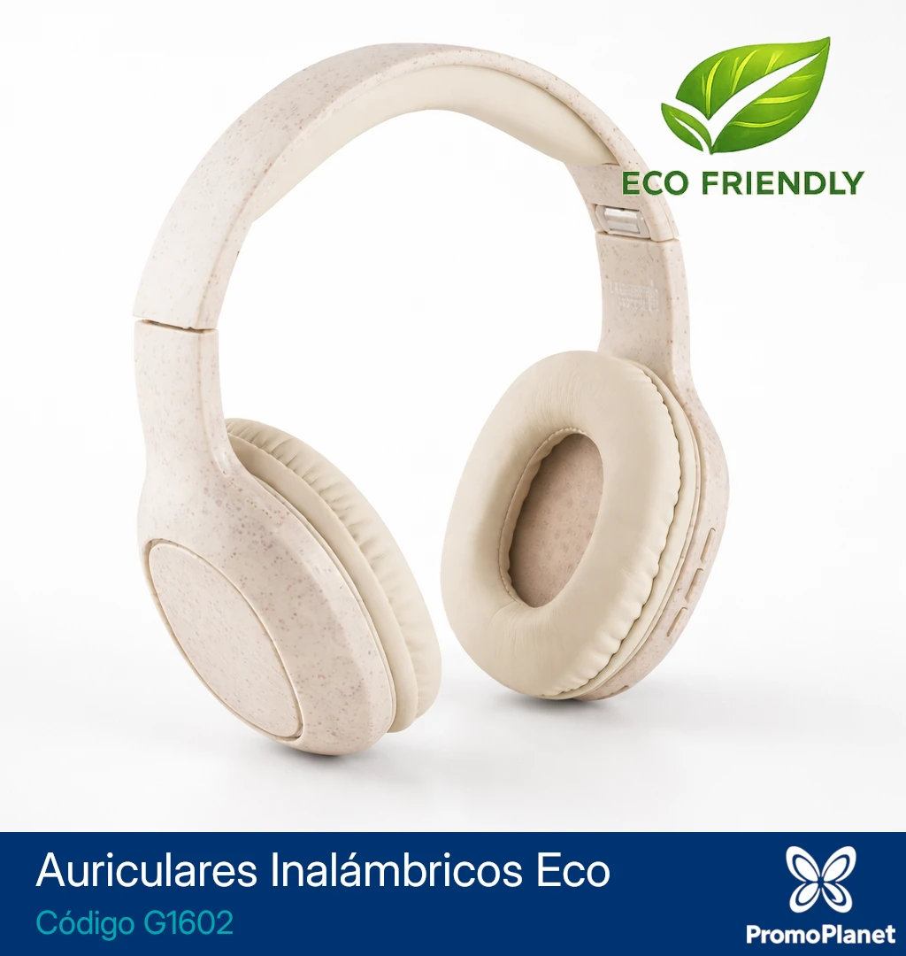 Los auriculares inalámbricos G1602 están fabricados en fibra de paja de trigo y ABS, combinando diseño funcional y enfoque eco friendly.