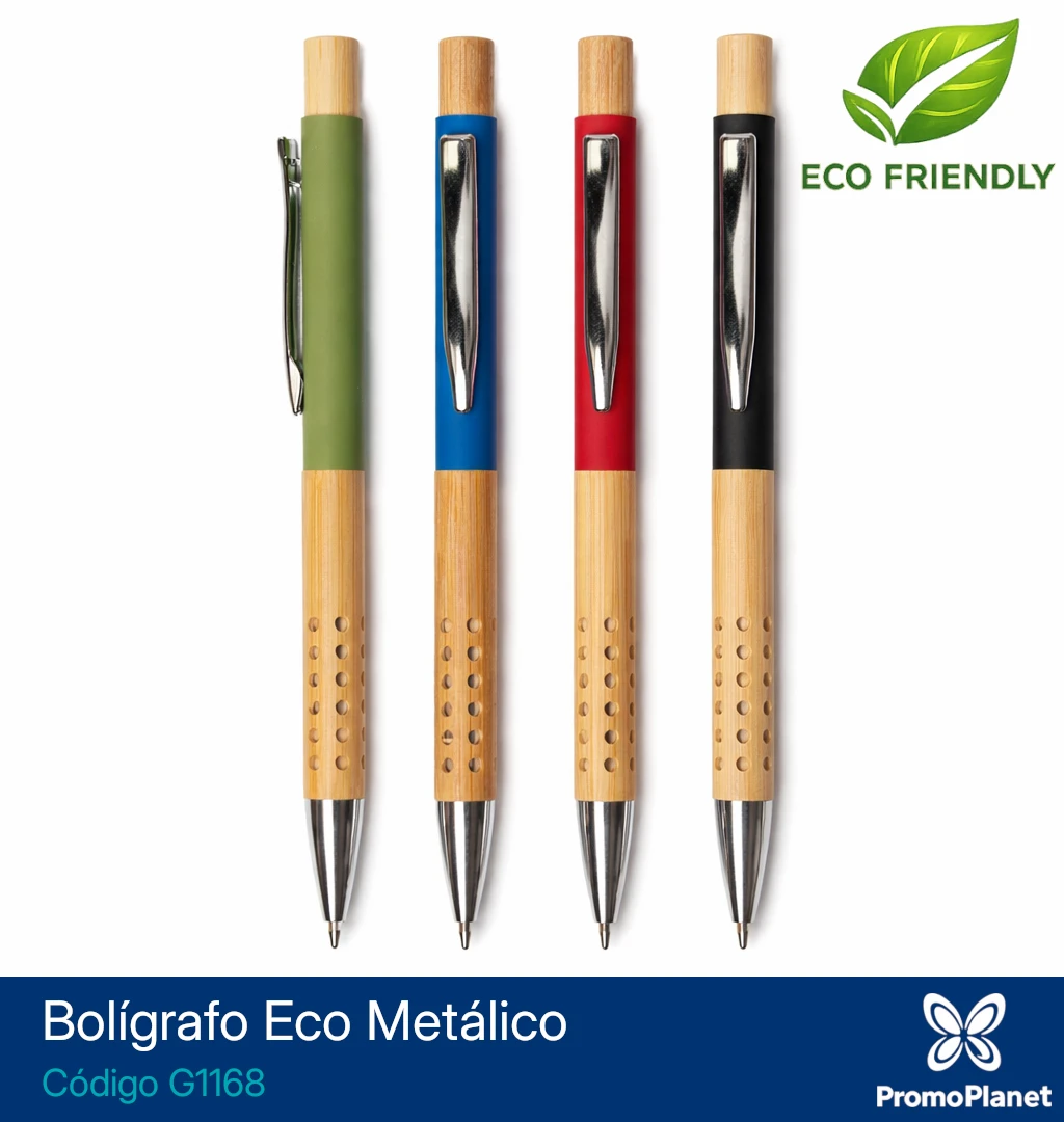 El bolígrafo G1168 es retráctil y combina cuerpo de aluminio con secciones en bambú natural.