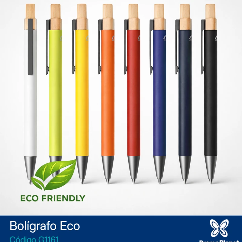 El bolígrafo G1161 es retráctil y está fabricado con cuerpo metálico de aluminio reciclado, disponible en distintos colores con acabado mate.