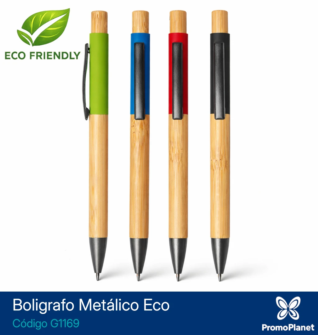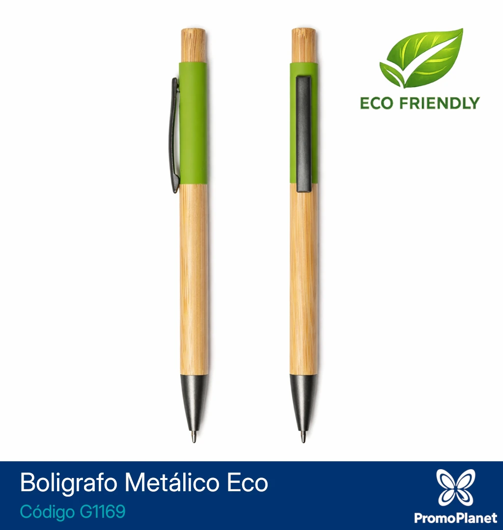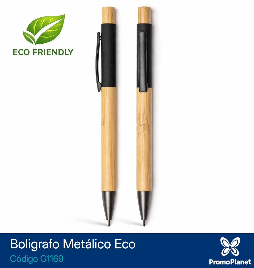 El bolígrafo G1169 combina cuerpo de aluminio con sección en bamboo, logrando un equilibrio entre material natural y terminación moderna.