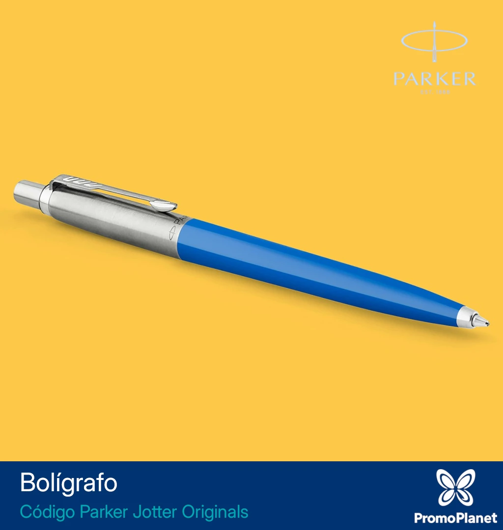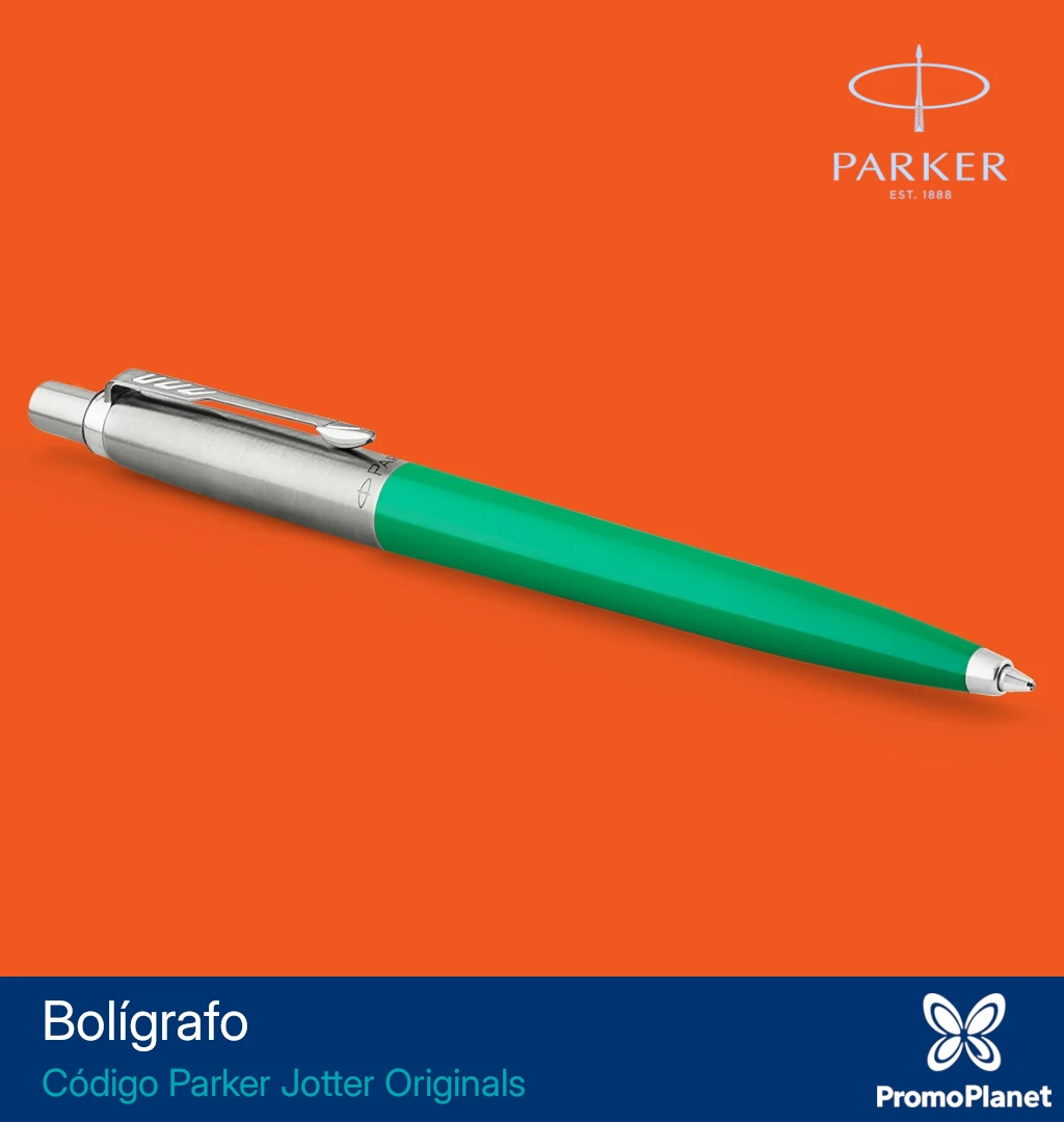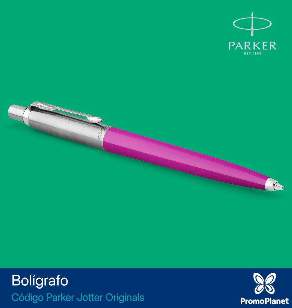 El bolígrafo Parker Jotter Original combina cuerpo plástico en colores vibrantes con clip y frente en acero inoxidable.