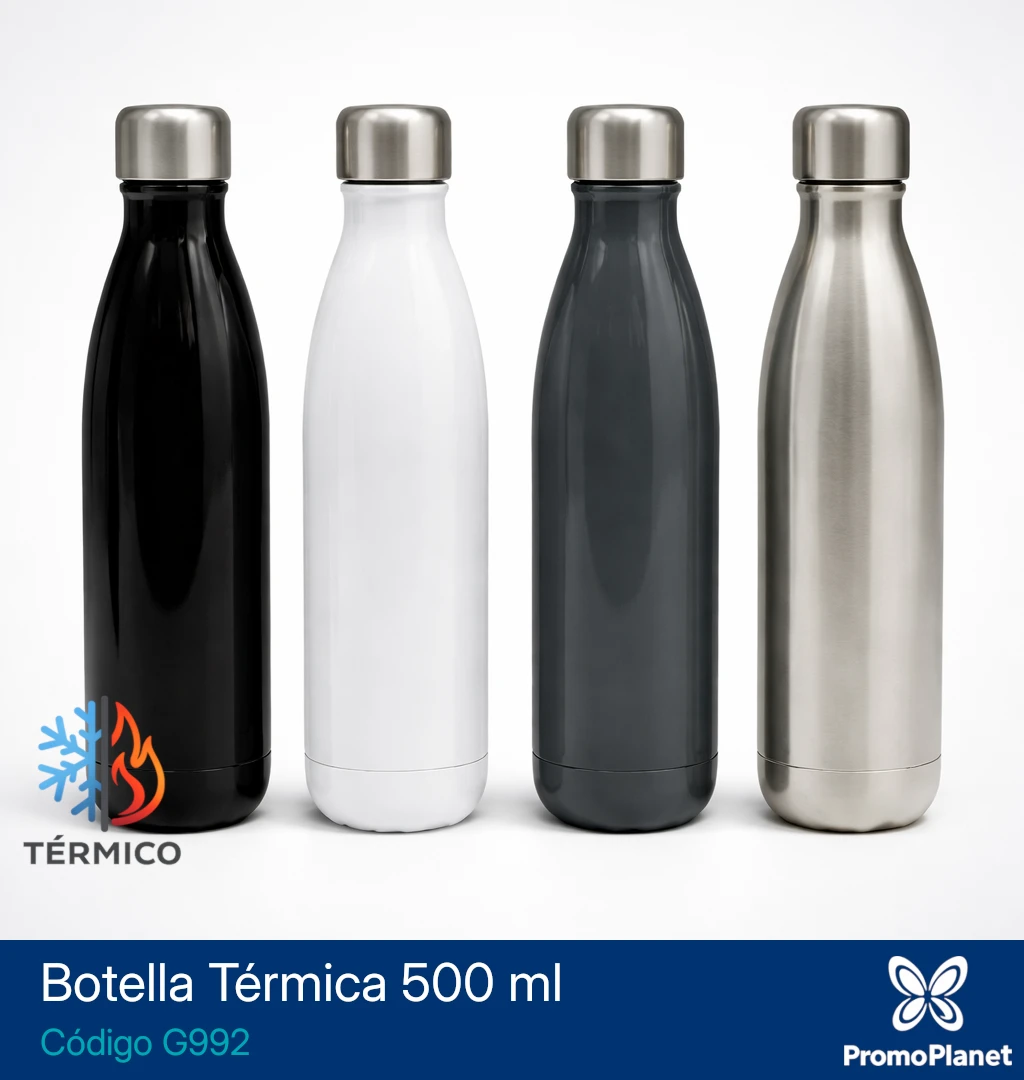La botella térmica G992 está fabricada en acero inoxidable 304 bicapa, lo que permite conservar la temperatura de las bebidas por más tiempo.