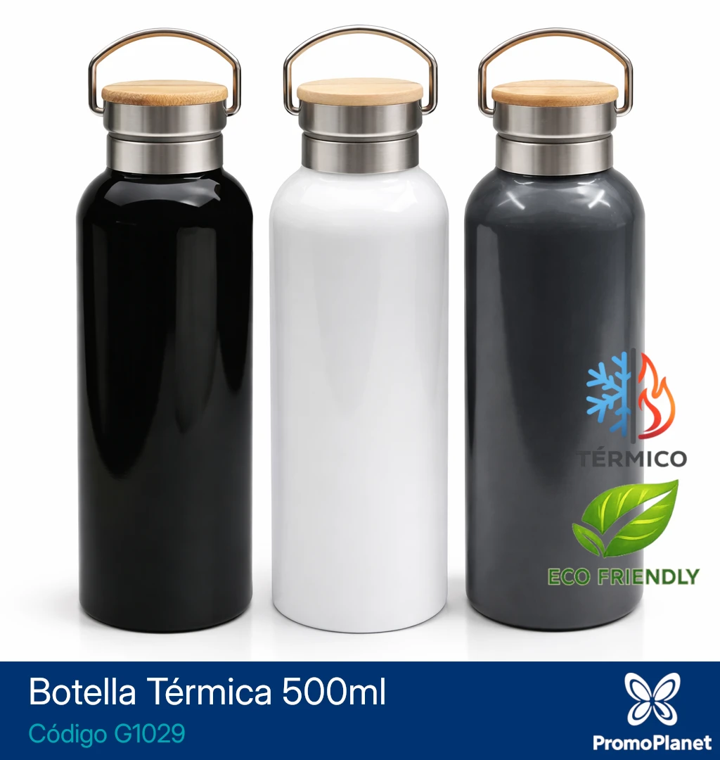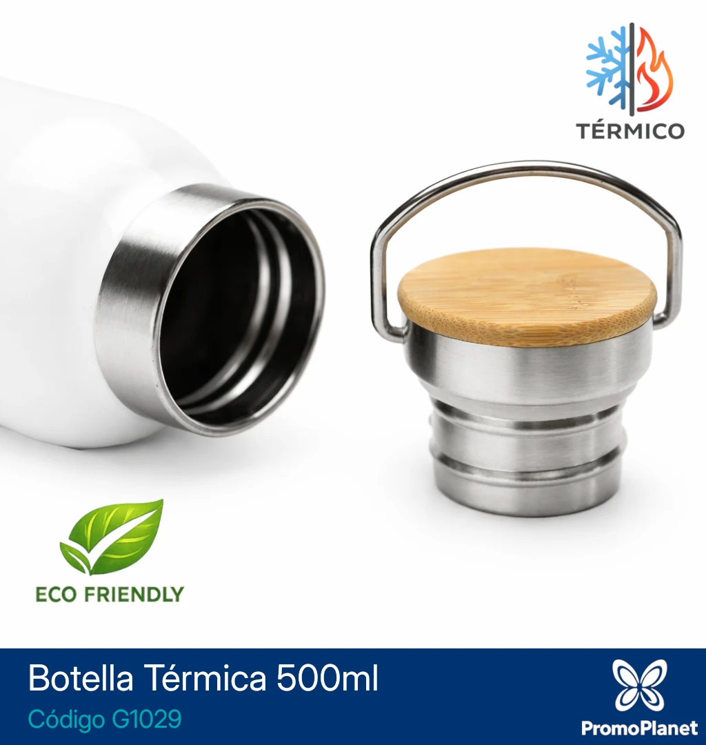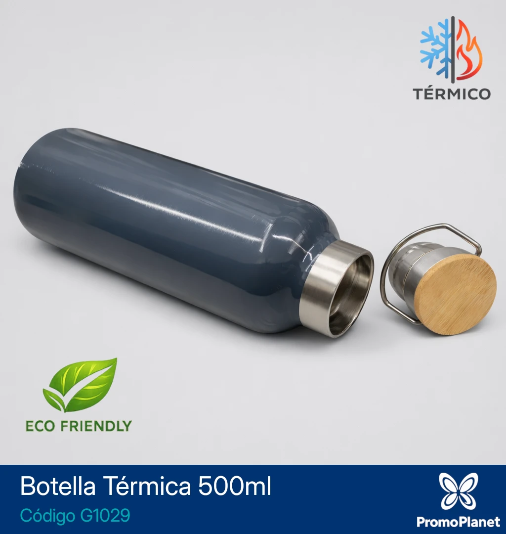 La botella térmica G1029 está fabricada en acero inoxidable con doble pared, lo que permite conservar la temperatura de las bebidas por más tiempo.
