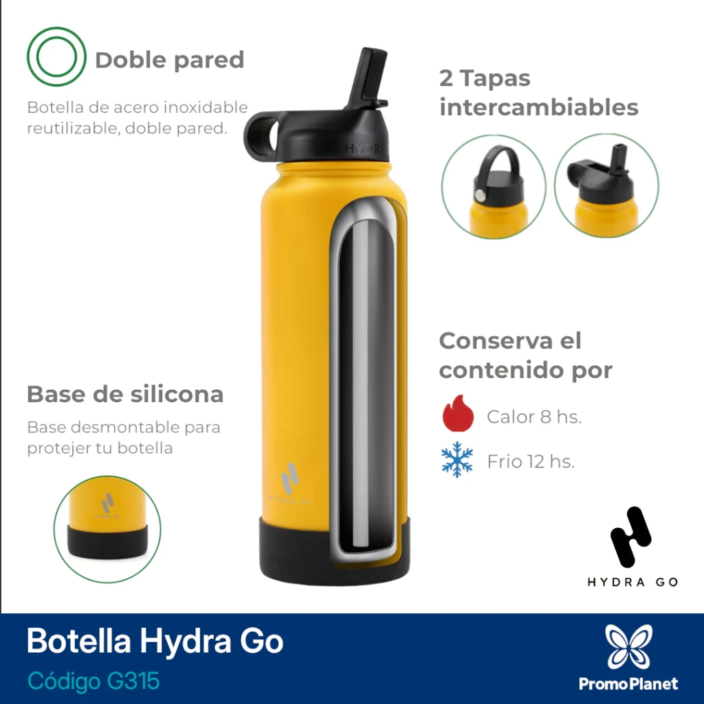 La botella térmica G315 de 750 ml está diseñada con doble pared de acero inoxidable 18/8 para conservar bebidas frías por 12 horas y calientes por 8.