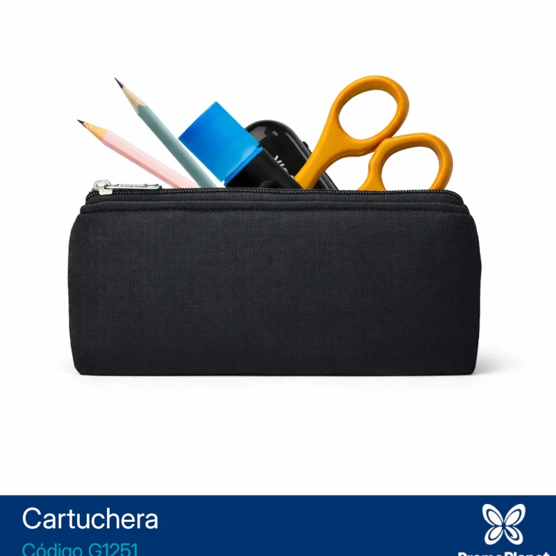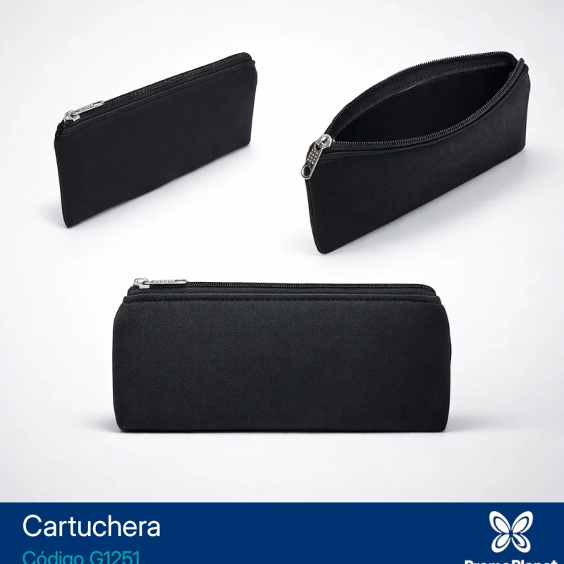 La cartuchera G1251 está confeccionada en poliéster resistente, con cierre superior que asegura el contenido.