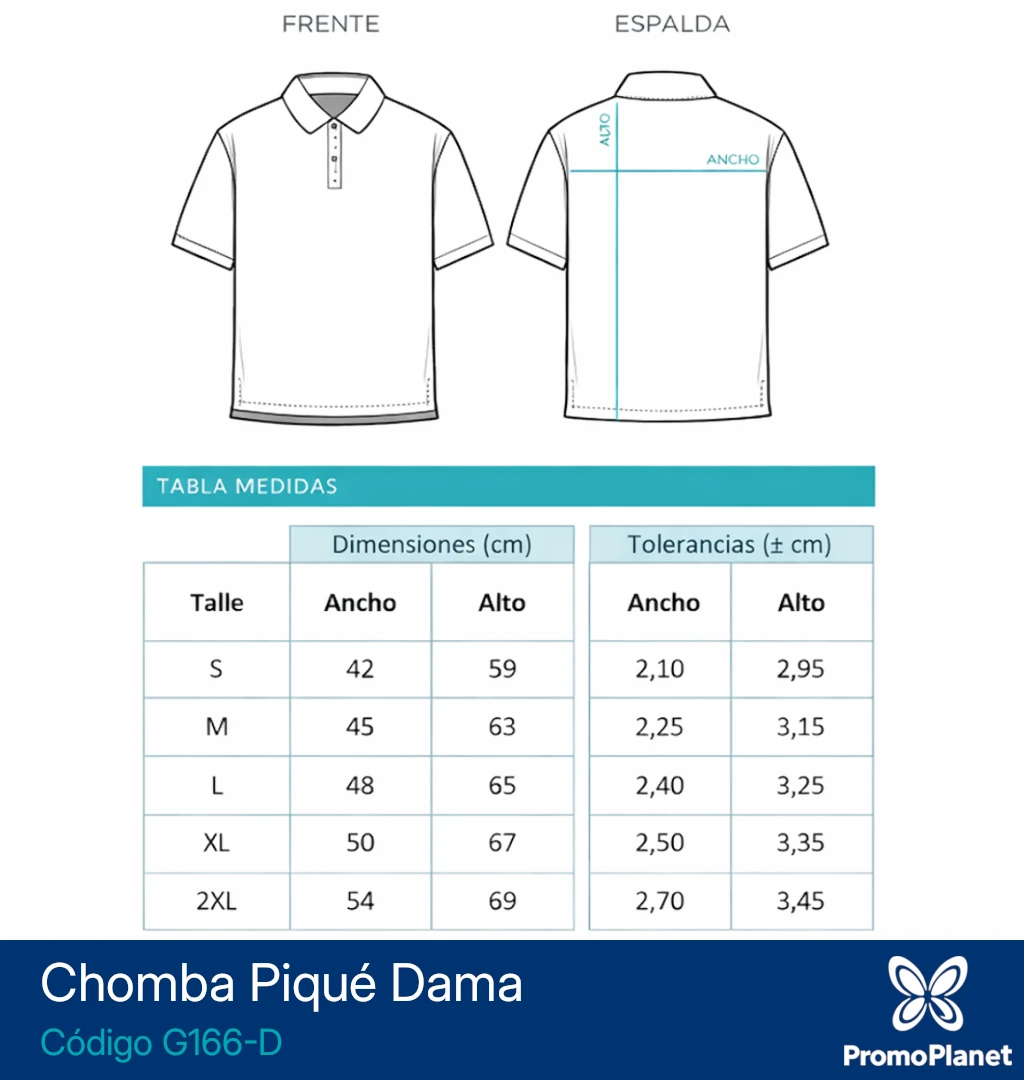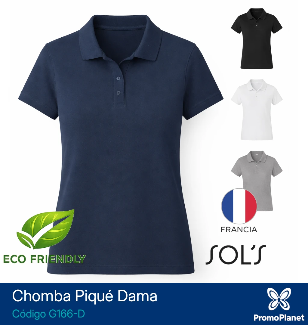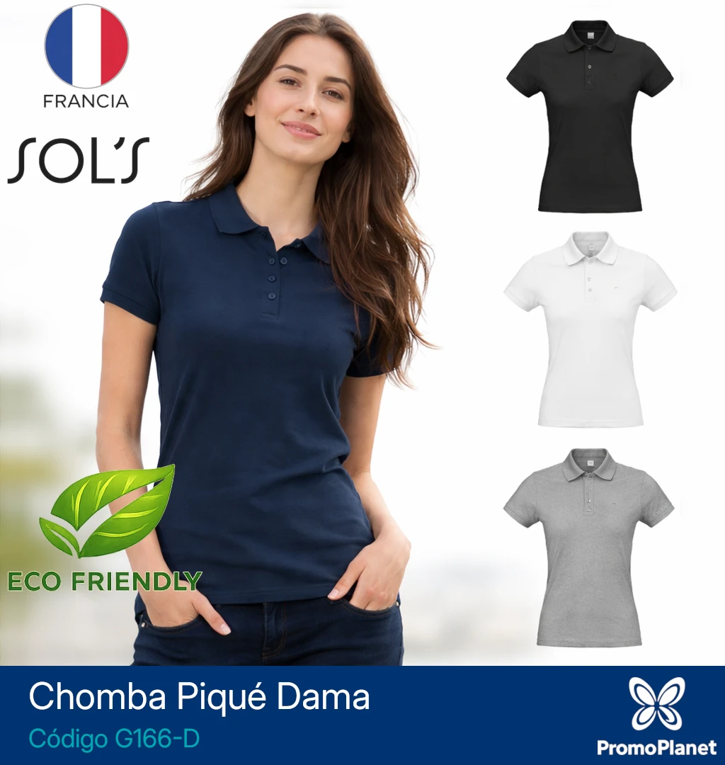 La chomba G166-D para dama ofrece un corte ajustado y está confeccionada en piqué 100% algodón peinado de 170 g.
