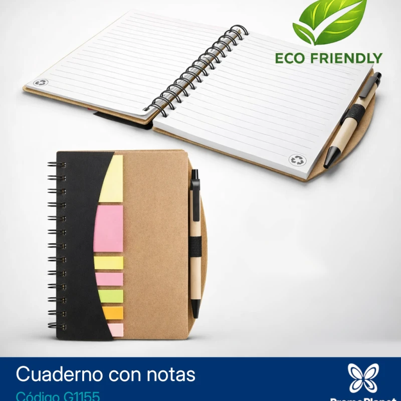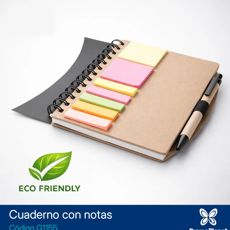 El cuaderno G1155 está confeccionado con tapa dura de cartón kraft y anillado doble.