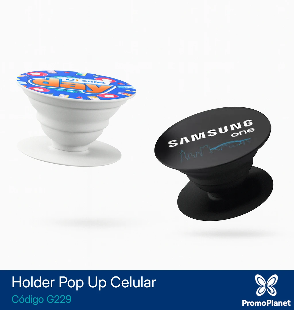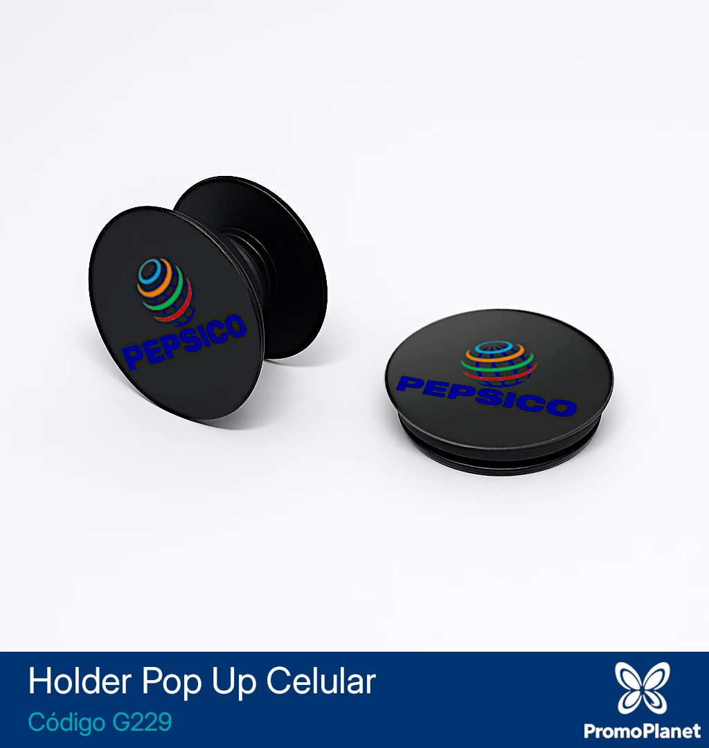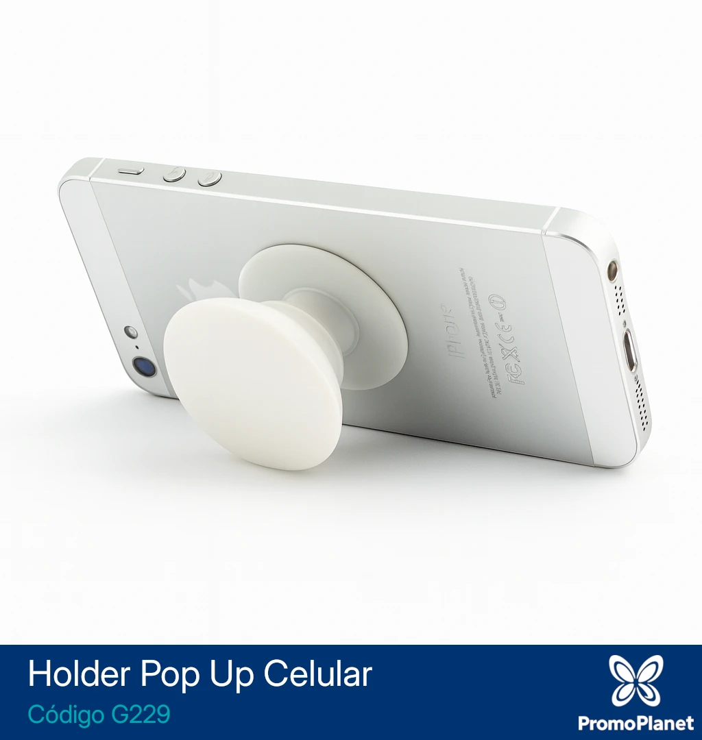 El holder Pop Up G229 es un soporte retráctil para celular fabricado en plástico resistente.