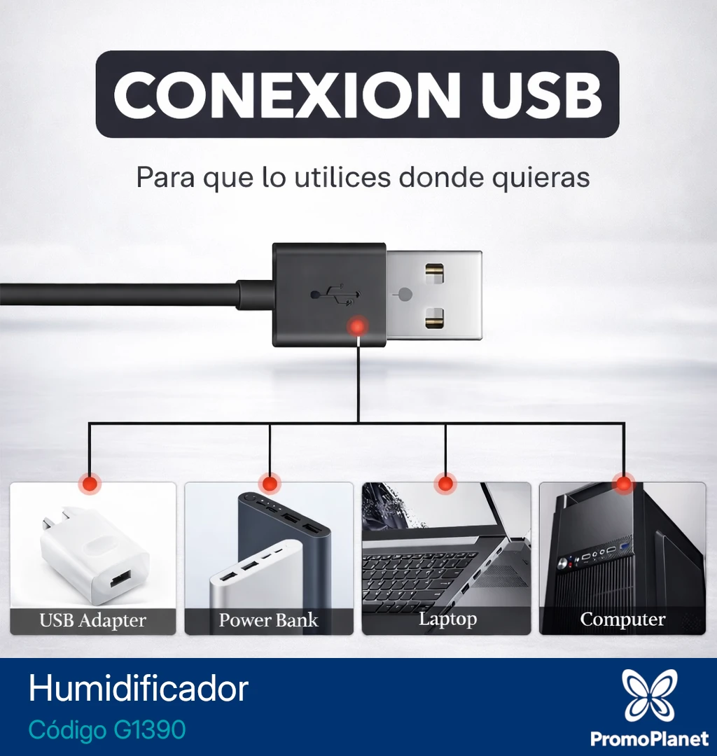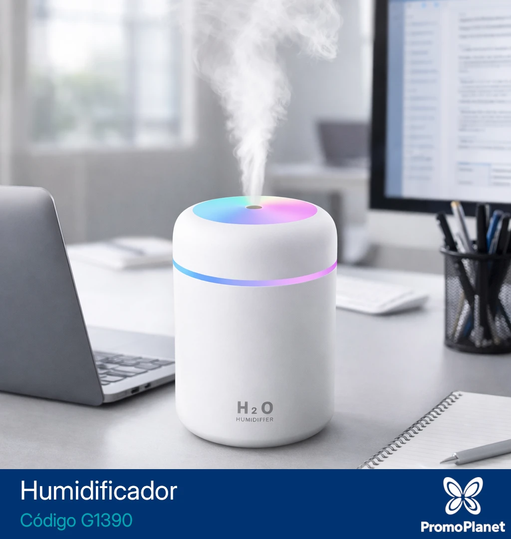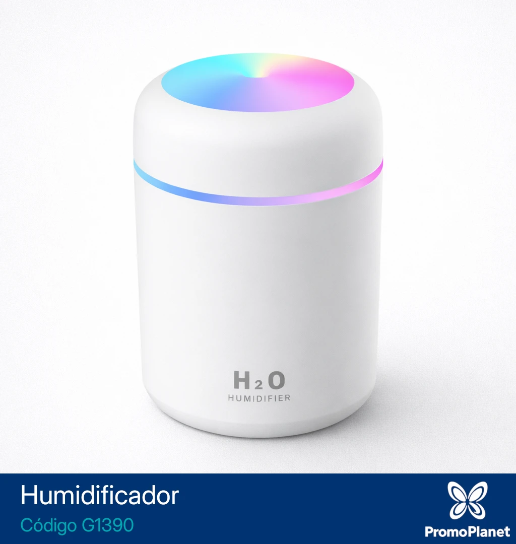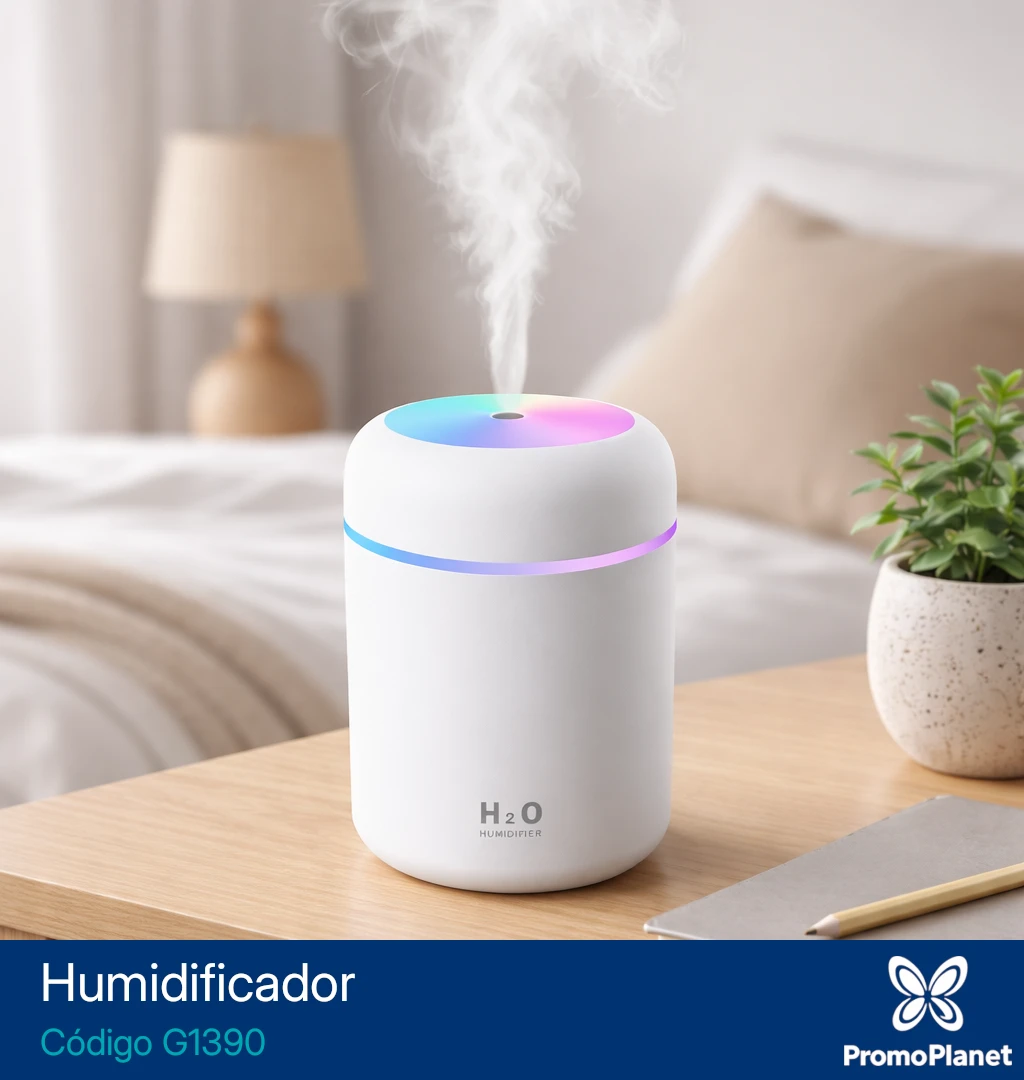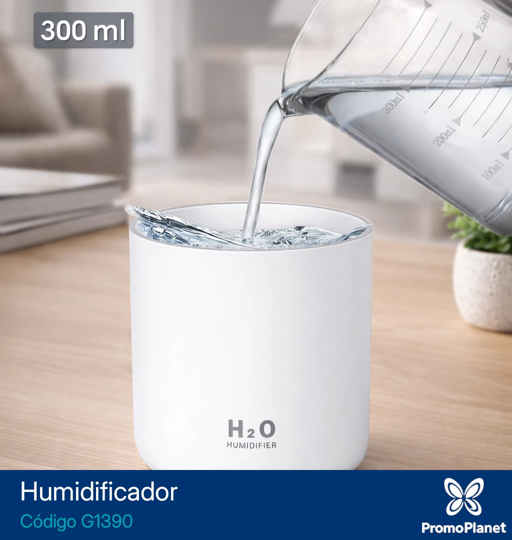 El humidificador ultrasónico G1390 cuenta con una capacidad de 300 ml y está fabricado en ABS y PP resistente.