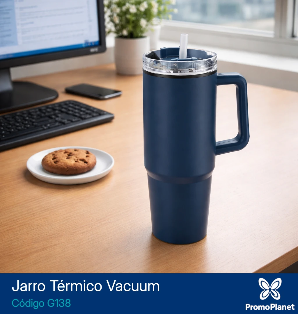 El mug térmico G138 cuenta con doble pared para conservar bebidas frías y calientes por más tiempo.