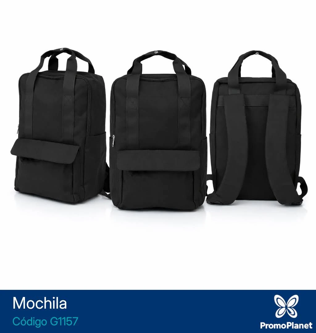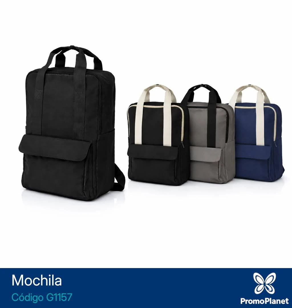 Incorpora doble manija superior con broche, compartimiento interno acolchado para notebook y tiras posteriores acolchadas regulables.