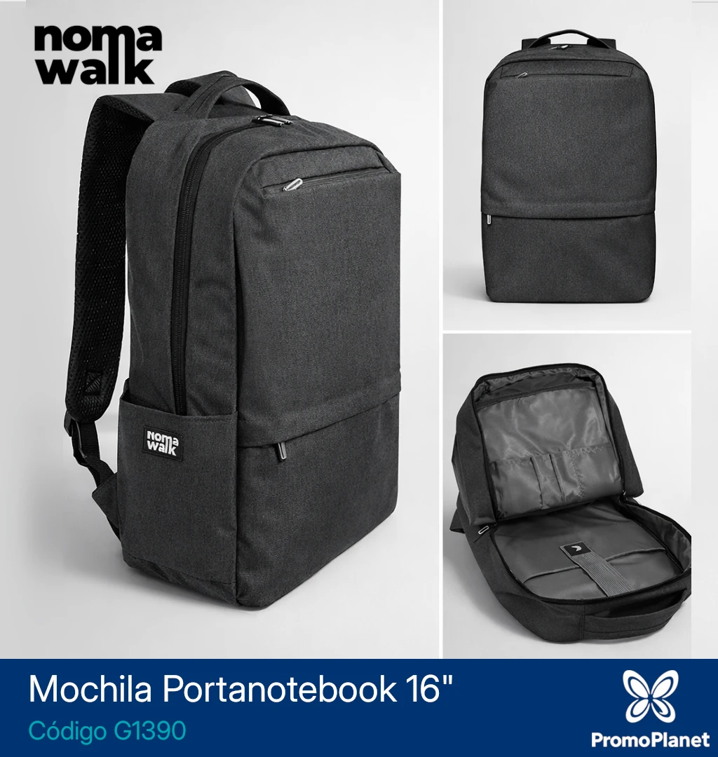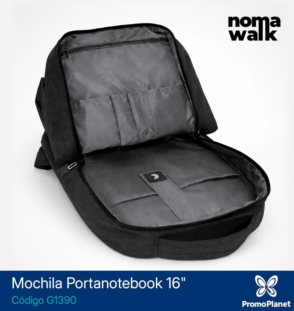 Cuenta con compartimento principal con bolsillo portanotebook acolchado para equipos de hasta 16", con tira y detalle engomado para una sujeción segura.
