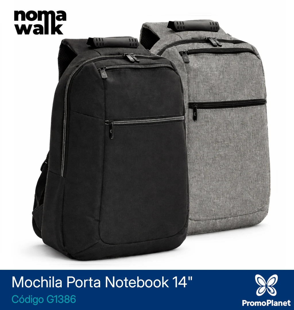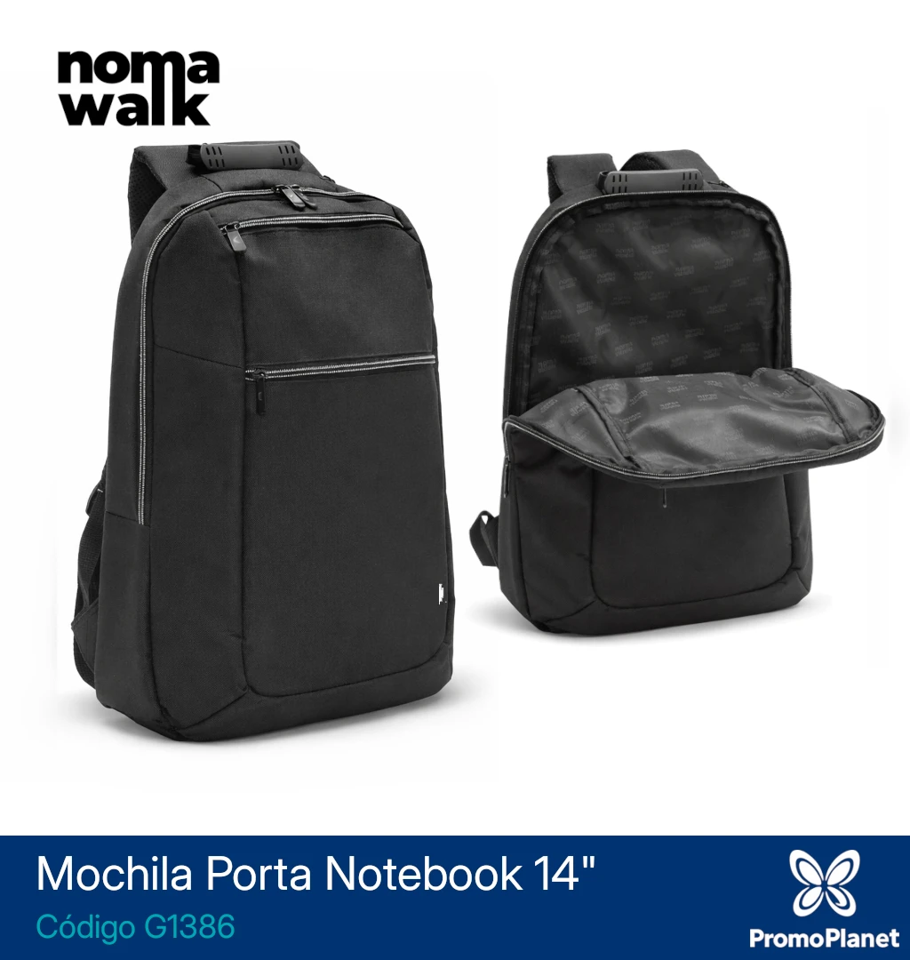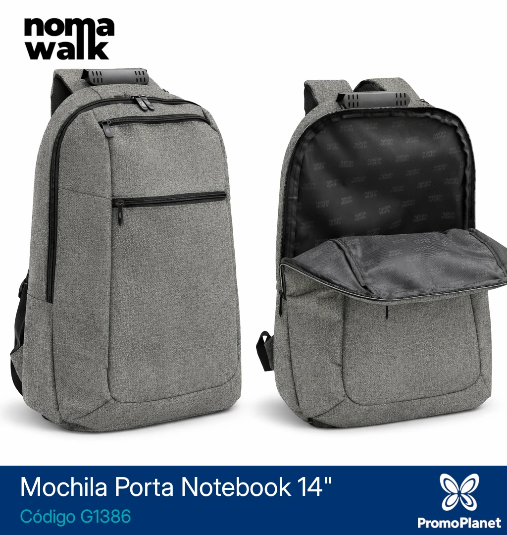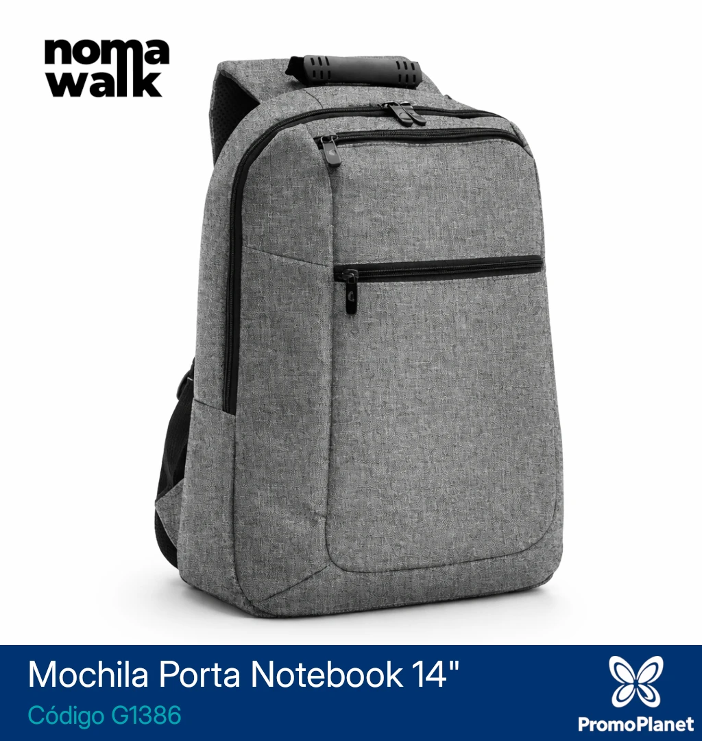 Cuenta con compartimento lateral porta notebook de hasta 14", compartimento principal y dos bolsillos frontales horizontales.