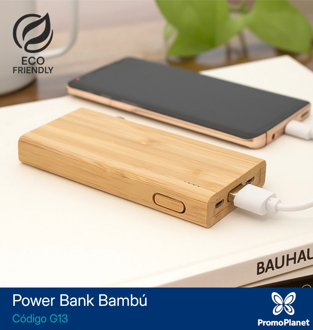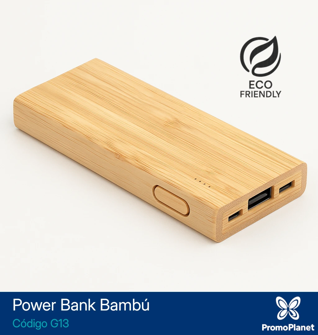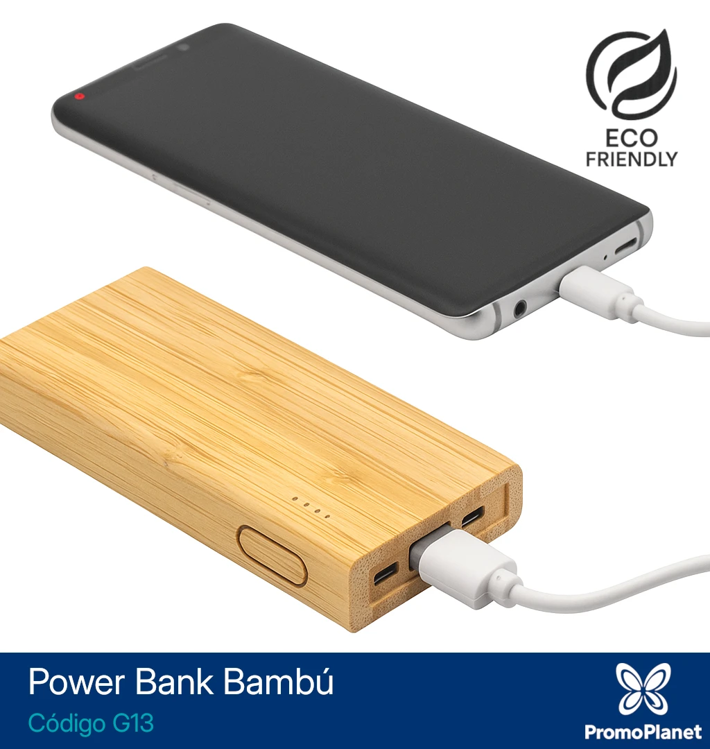 El power bank G13 está fabricado en bambú y ofrece una capacidad de 5000 mAh en un formato compacto de 12 x 5,2 x 1,4 cm.