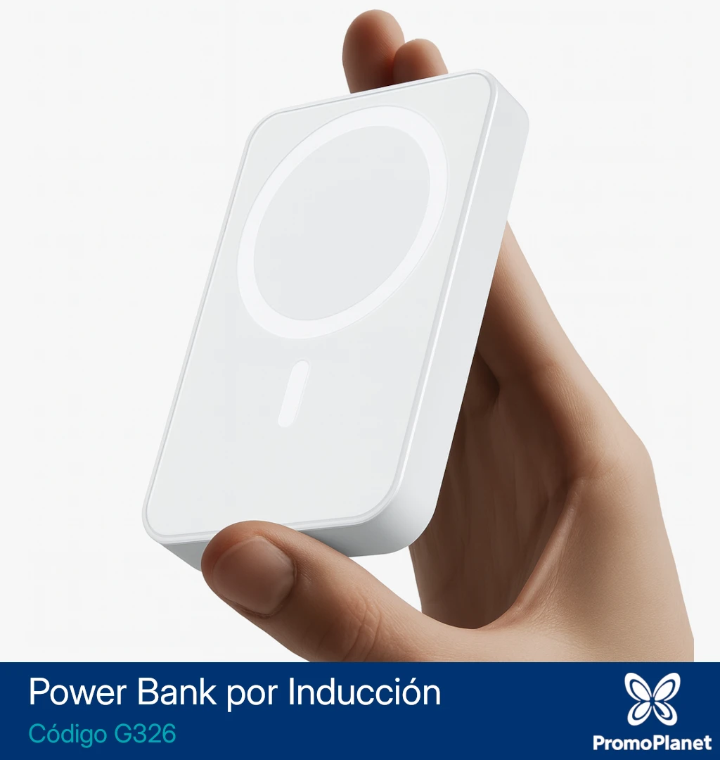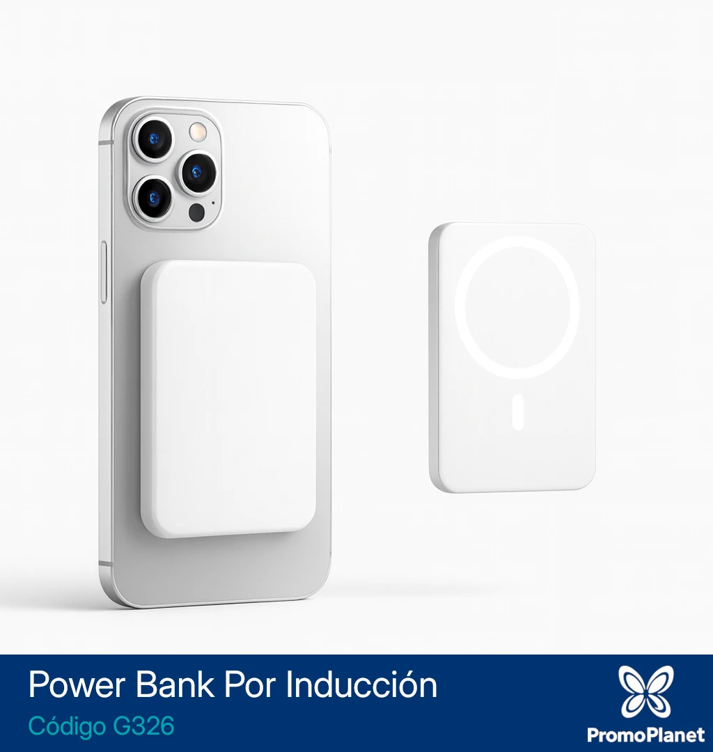 El power bank G326 es un cargador inalámbrico MagSafe de 15W con capacidad de 5000 mAh, ideal para una carga rápida y práctica.