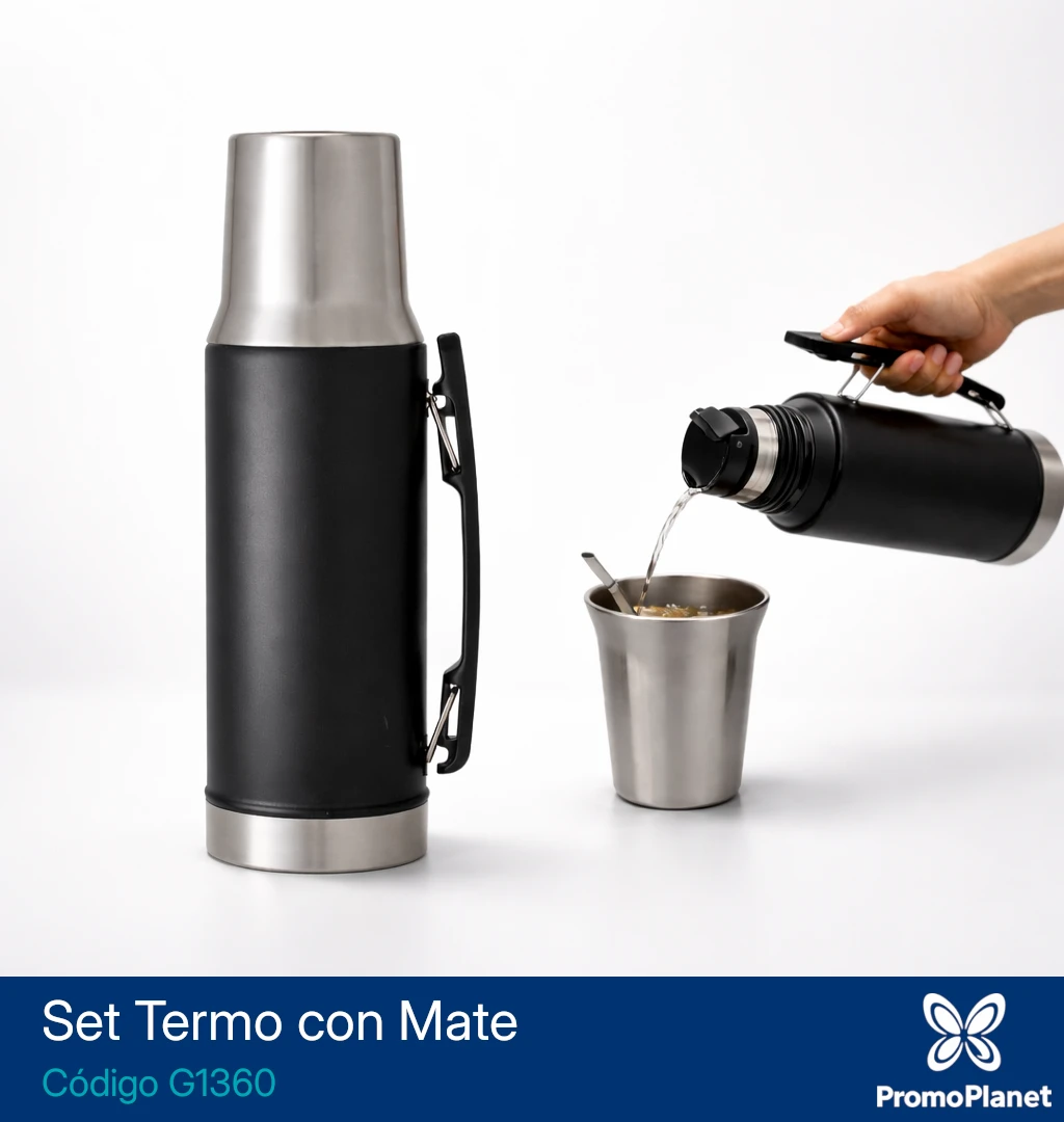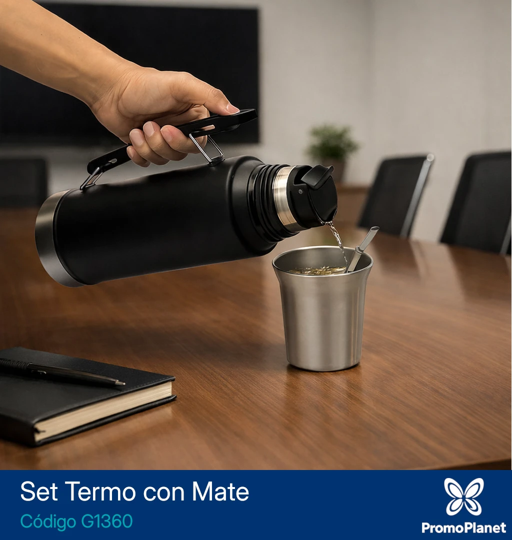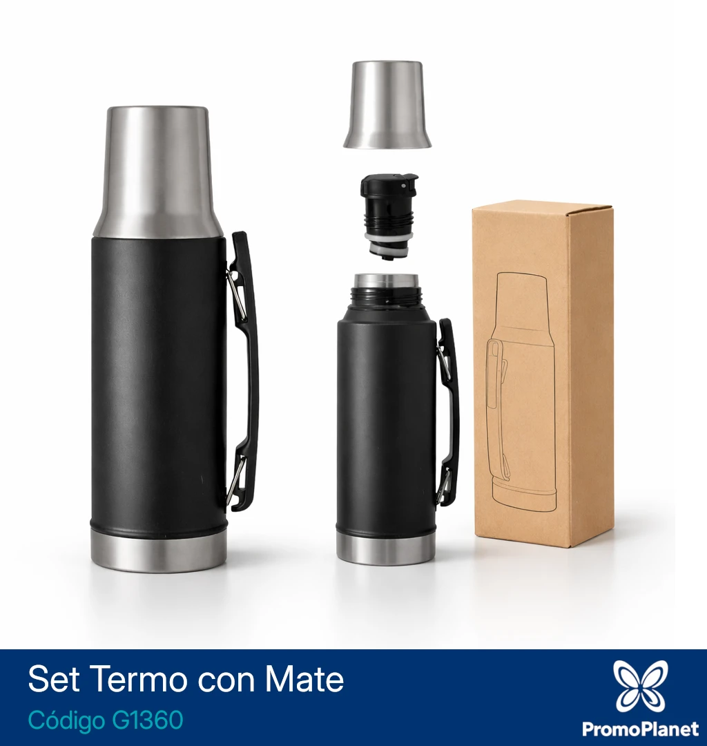 El termo con mate G1360 es un set dos en uno, compacto y moderno, ideal para uso diario y regalos empresariales.