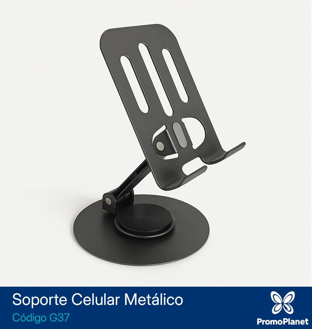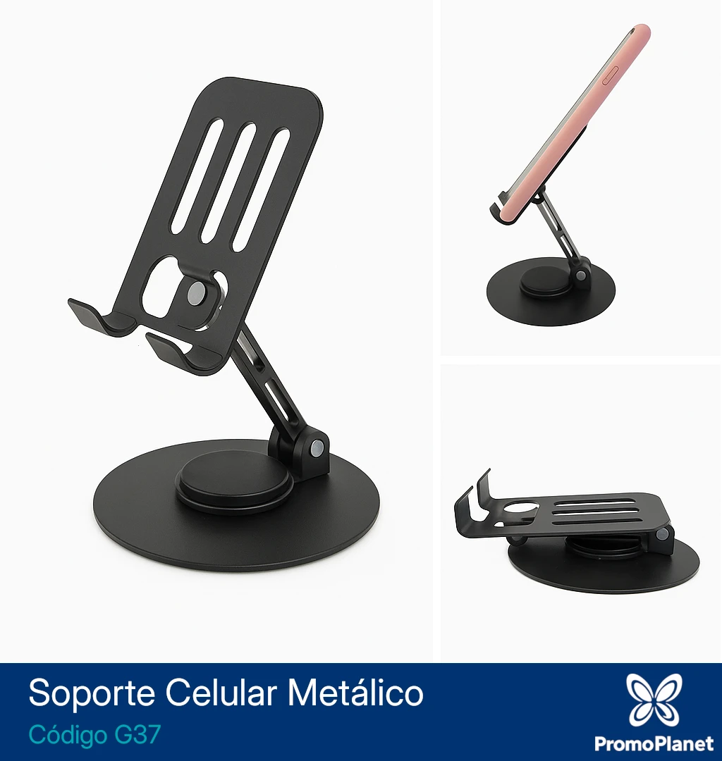 El soporte G37 está fabricado en metal resistente y cuenta con diseño plegable, rotación de 720° y superficie antideslizante.