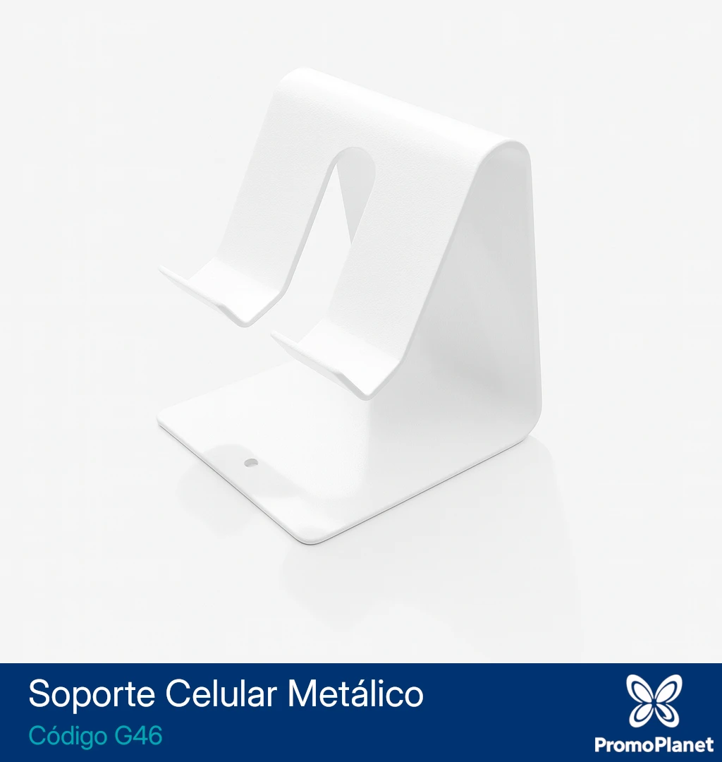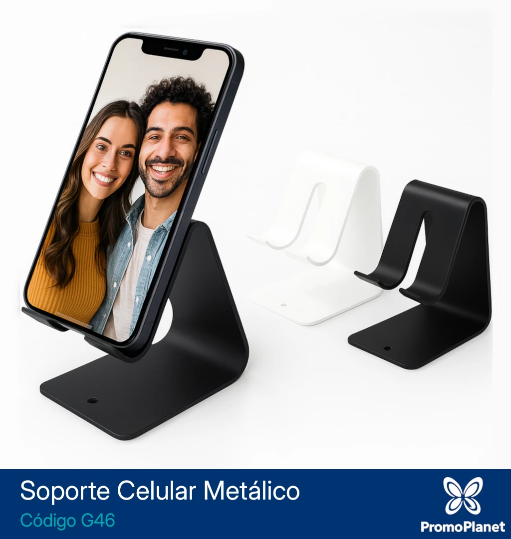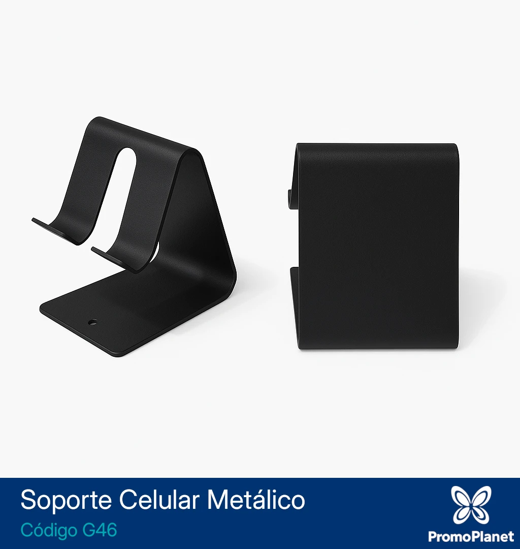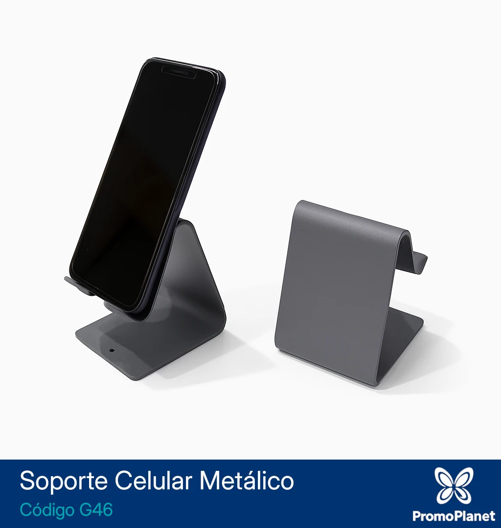 El soporte metálico para celular G46 está confeccionado en metal con acabado mate.