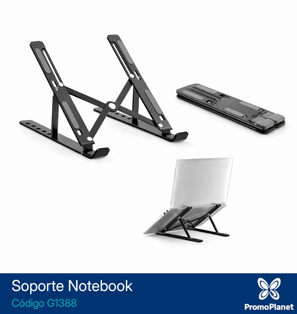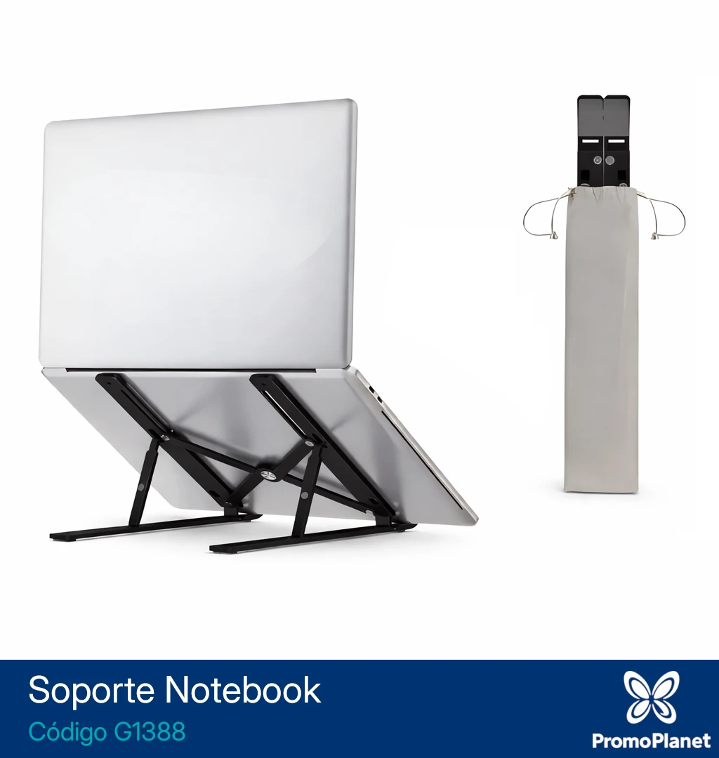 El soporte para notebook G1388 está fabricado en aluminio resistente y presenta un diseño ajustable y plegable.